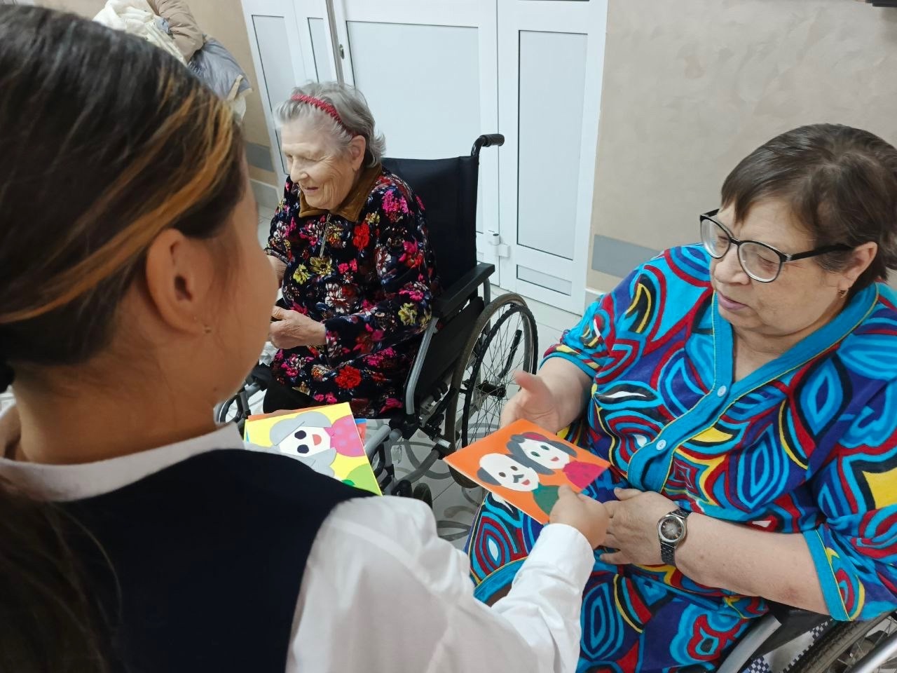 В нашей школе, советник директора по воспитанию совместно с педагогами провели классные часы с приглашением ветеранов педагогического труда, изготовили поздравительные открытки и поздравили пожилых людей дома престарелых.