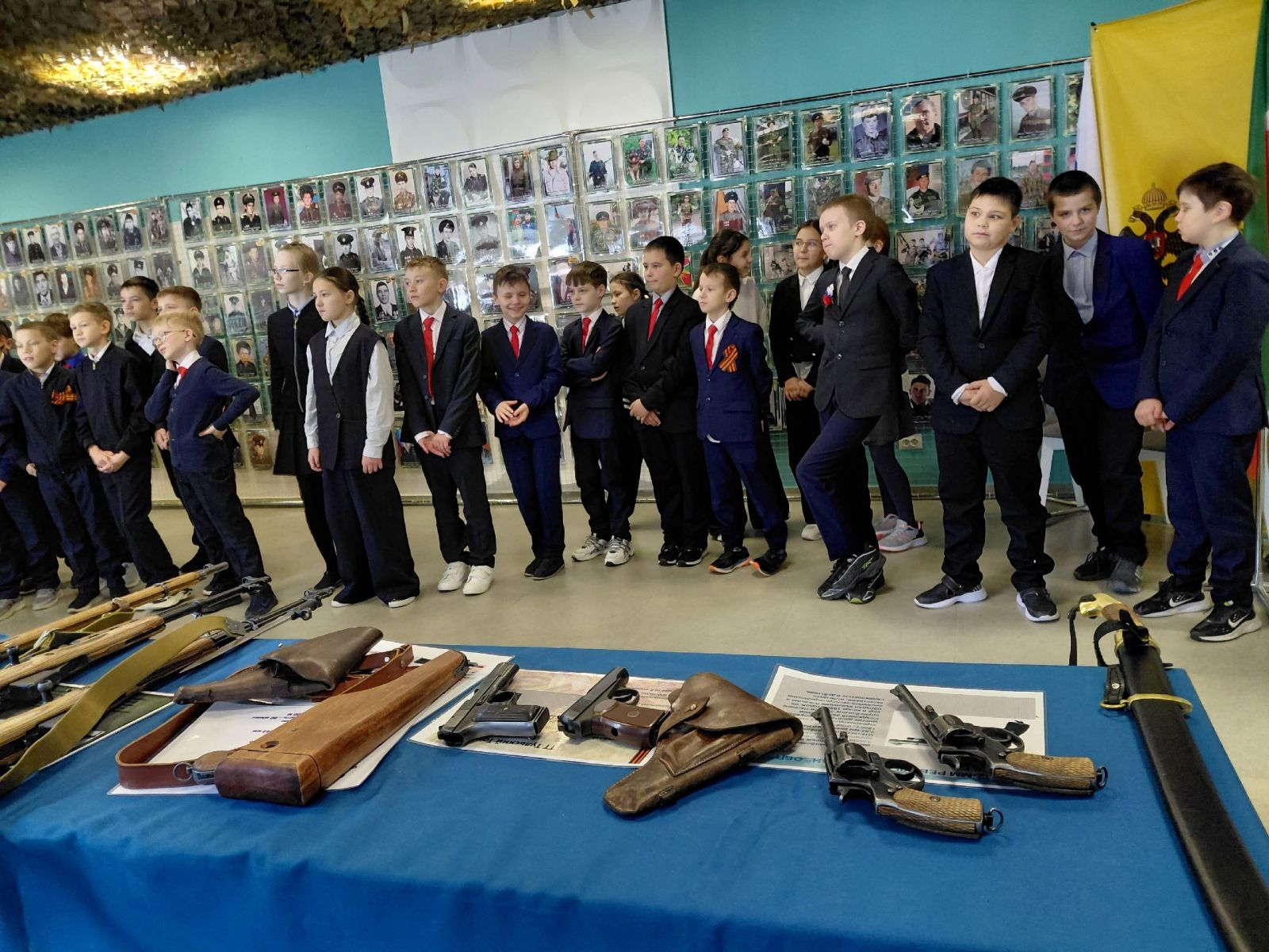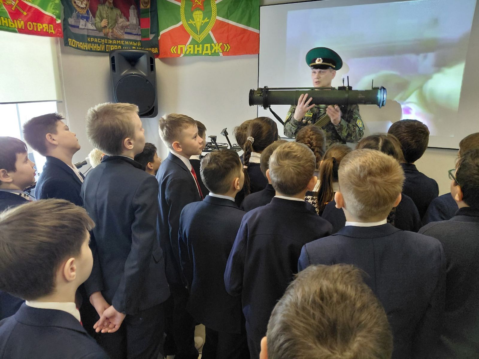В рамках месячника оборонно-массовой работы и военно-патриотического воспитания, посвященного дню Защитника Отечества 4 А и 4 В классы посетили мобильный музей-выставку "НА ЗАЩИТЕ ГРАНИЦ"