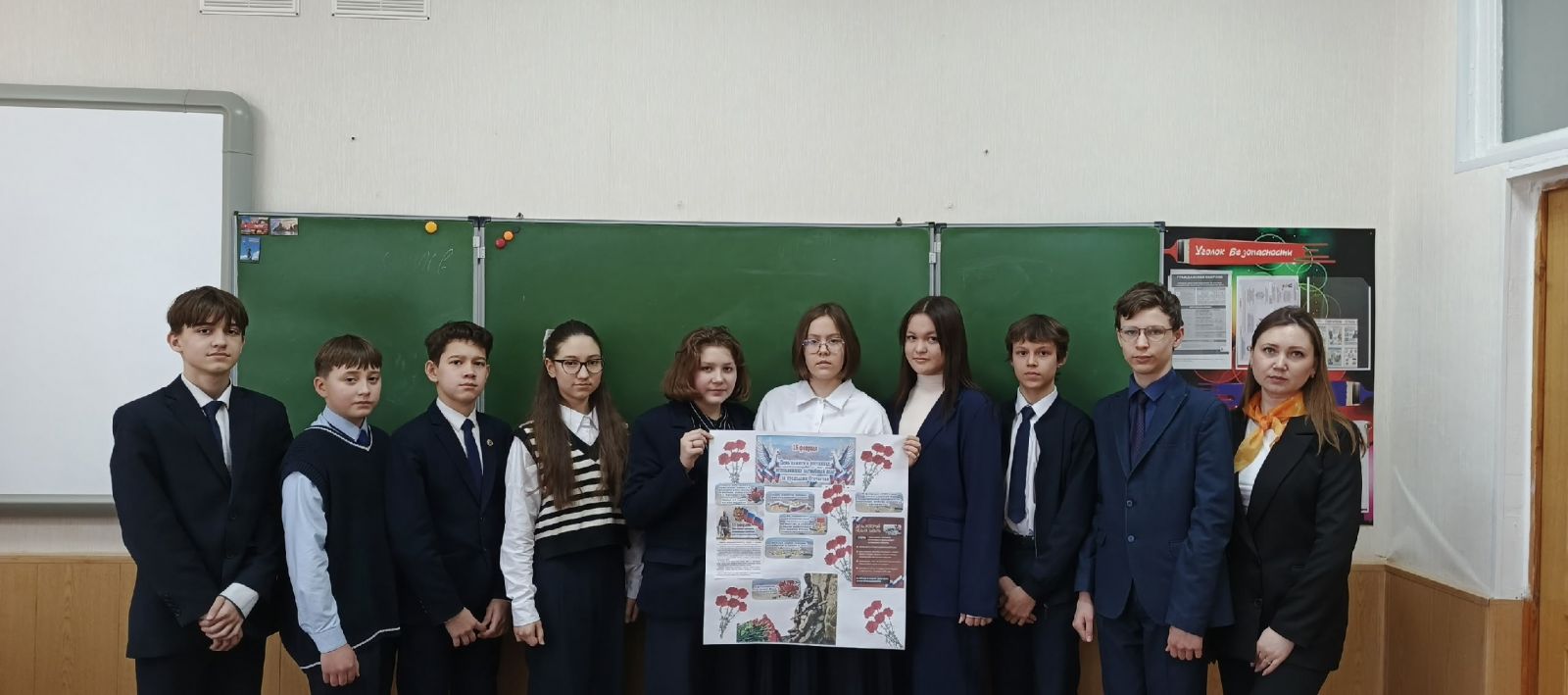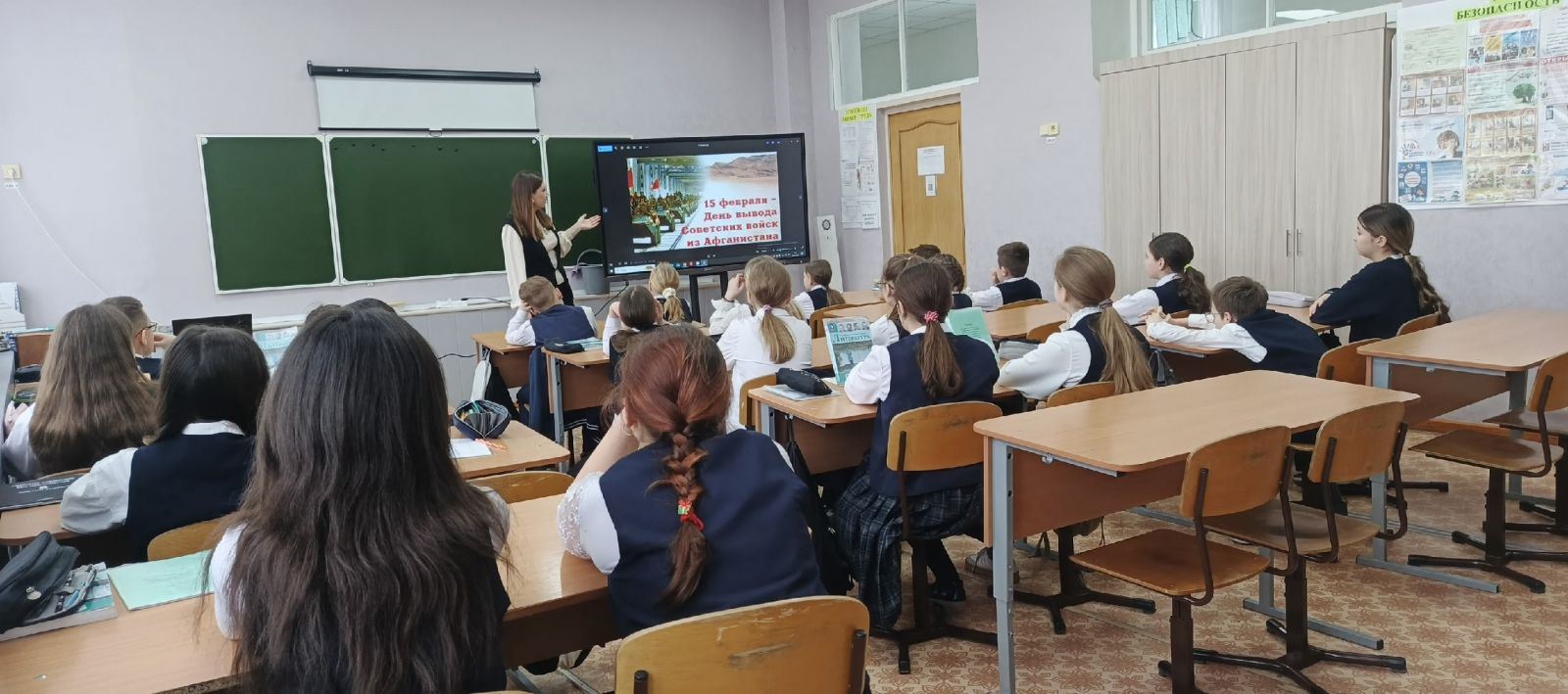 В рамках проведения мероприятий, приуроченных к месячнику гражданско-патриотического воспитания, перед ребятами выступили руководитель Лениногорского местного отделения Всероссийской общественной организации ветеранов «Боевое братство» Якупов А.А. и ветеран боевых действий Валиев А.Я. Они провели для учащихся организованный урок мужества, посвященный к годовщине вывода войск из Афганистана. Так же в преддверии памятной даты, советник директора по воспитанию провела с учащимися тематический классный час «Равнение на подвиг», в котором затронули такие понятия как, жизнь, достоинство, патриотизм, гражданственность,