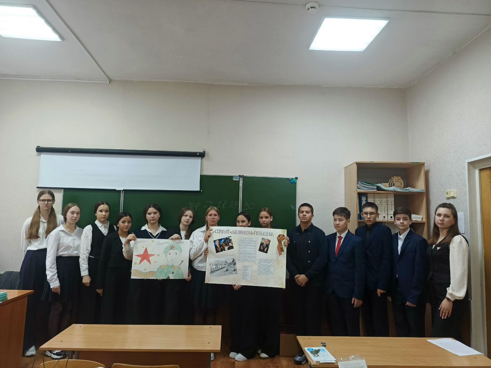 Советник директора по воспитанию провела с ребятами тематическую беседу "Мы помним" , провела интеллектуальную игру «Кладовая памяти», ребята активно отвечали на вопросы, вспоминали битвы, подвиги героев и знаменательные даты, а также изготовили плакаты «Память жива».