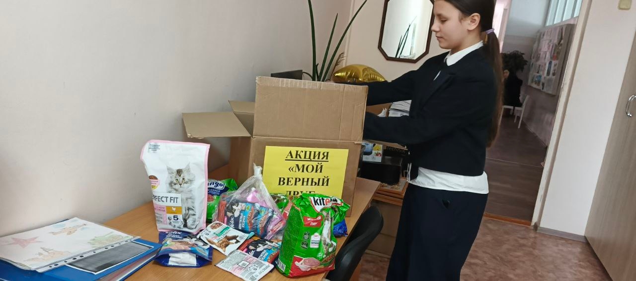 Исходя из данной ситуации, мы провели в нашей школе акцию "Мой Верный Друг". Учащиеся с удовольствием принесли корма, которые в дальнейшем были додавлены в приют "Верный друг".