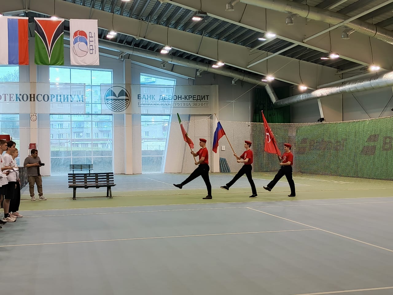 Ученики МБОУ "СОШ №6 г. Лениногорска имени Героя России Д.Н. Исламова" стали знаменосцами на открытии теннисного турнира в Лениногорске