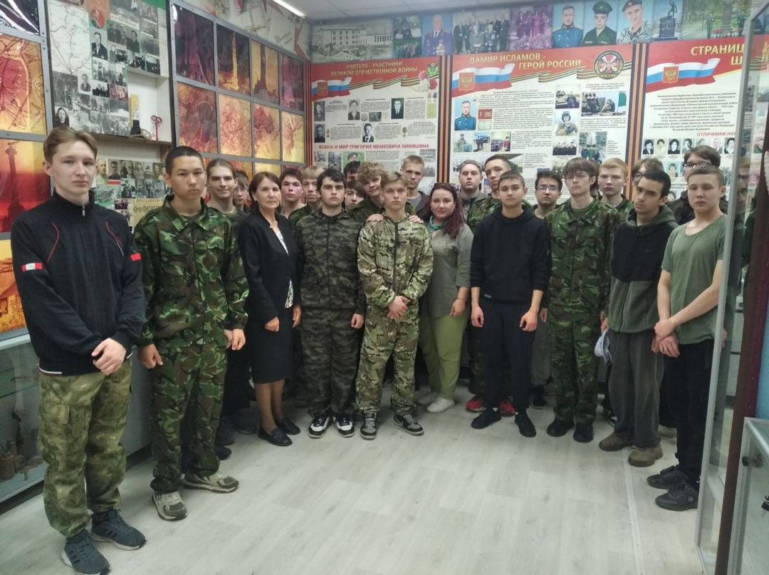 Экскурсоводы школьного музея Родная земля' провели экскурсию для участников военно- полевых сборов, учащихся 10-х класса школ города. Учащиеся узнали о подвигах героев Великой Отечественной войны и СВО, ознакомились с экспонатами музея .Экскурсия по музею