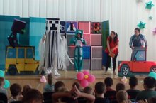 Наш лагерь посетил Альметьевский драматический театр. Ребята посмотрели спектакль «Жители страны Пикселей» Вместе с героями Русланом, Алиной они повторяли правила дорожного движения, переживали за героев, когда они попадали в руки страшных монстров. -