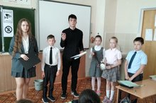 В рамках года родных языков и народного единства 12-15 мая 2021 года учащиеся 10-х классов провели в начальных классах уроки мужества, посвященные событиям Великой Отечественной войны. Старшеклассники рассказали об основных сражениях ВОВ, о подвиге советского народа, о том, какой ценой далась Великая Победа. Особо отметили подвиги героев СССР – наших земляков: Гафиатуллина Г.Г., Денисова И. Ф., Заварыкина И. А., Мурзина И.Х., Садриева С. С., Мусы Джалиля и других. Вниманию ребят были представлены музейные экспонаты: фронтовая фляжка и ложка, солдатский ремень и письма с фронта. Учащиеся начальных классов рассказали о родных, которые участвовали в войне или работали в тылу. Туган телләр һәм Халыклар бердәмлеге елы кысаларында 12-15 нче май көннәрендә 10 нчы сыйныф укучылары башлангыч сыйныфларда Бөек Ватан сугышы вакыйгаларына багышланган Батырлык дәресләре үткәрделәр. Өлкән сыйныф укучылары Бөек Ватан сугышының төп көрәшләре, совет халкының батырлыгы, Бөек Җиңүнең нинди югалтулар белән бирелүе турында сөйләделәр. СССР Геройлары – безнең якташларыбыз: Гафиятуллин Г.Г., Денисов И. Ф., Заварыкин И. А., Мурзина И. Х., Садриев С. С., Муса Җәлил һ. б. батырлыкларын аерым билгеләп үттеләр. Балалар игътибарына музей экспонатлары тәкъдим ителде: фронт фляжкасы һәм кашык, солдат каешы һәм фронттан хатлар. Башлангыч сыйныф укучылары сугышта катнашкан яки тылда эшләгән туганнары турында сөйләделәр.