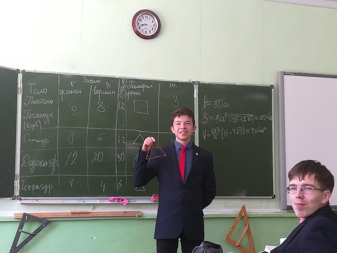 Результаты конкурсов будут подведены в конце недели. В 10 «а» классе учитель математики совместно с учениками этого класса провели развивающий лекторий «Правильные многогранники. Симметрия в пространстве»