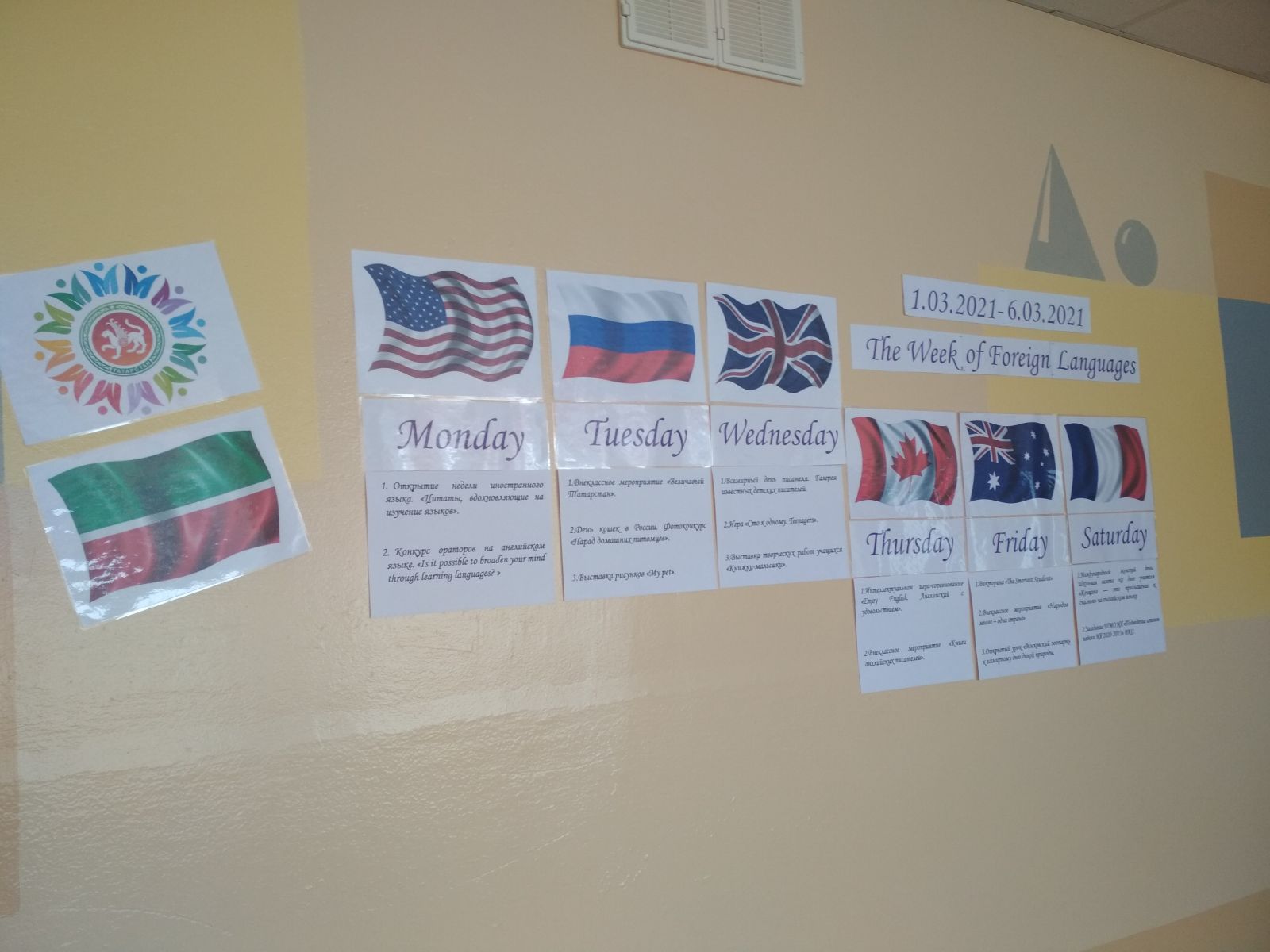 Татарстан Республикасында Туган телләр һәм Халыклар бердәмлеге елы һәм чит телләр атналыгы кысаларында 5 нче сыйныфларда " Our country, many cultures " дәресләре үткәрелде. Дәрестә балалар Украина, Татарстан, Әзербайҗан, Россия милли киемнәре белән таныштылар. Татарстан Республикасы турында бик күп яңалык белделәр, шулай ук Чечня һәм Татарстан турында балаларның шигырьләрен тыңладылар. Балалар Алабуга шәһәре макетлары, югарыдан ясалган Письмянка һәм республика табигатенең пейзажын әзерләделәр.