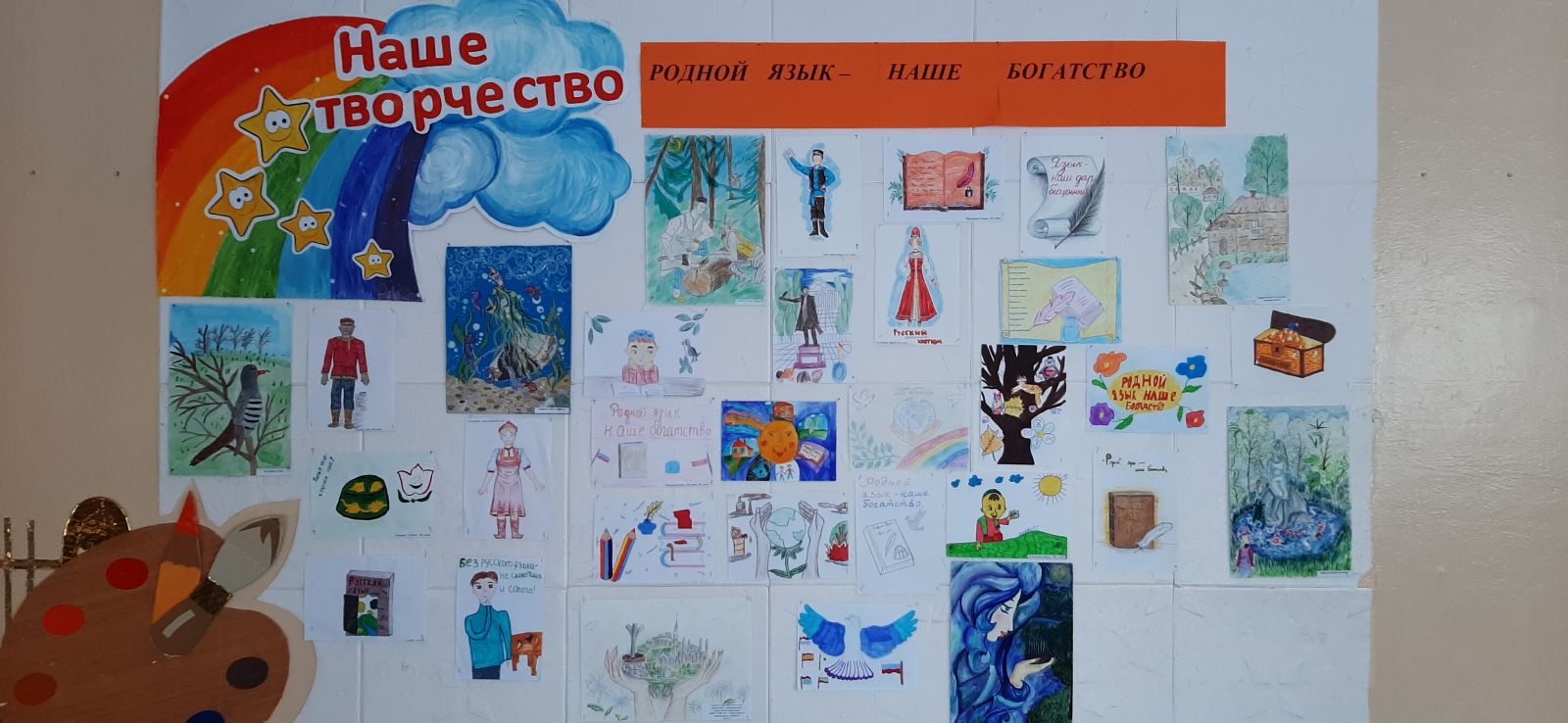 В рамках года родных языков и народного единства в Республике Татарстан с 15.02.2021 по 26.02.2021 в школе прошла выставка рисунков на тему «Родной язык - наше богатство». Учащиеся приняли активное участие в выставке. Каждый рисунок отличался своей оригинальностью. Благодаря такой выставке дети учатся передавать через рисунки всю свою любовь и красоту к родному языку.Татарстан Республикасында Туган телләр һәм Халык бердәмлеге елы кысаларында 15.02.20021-26.02.20021 елларда мәктәптә «Туган Тел - безнең байлыгыбыз»дигән темага рәсем күргәзмәсе узды. Укучылар күргәзмәдә актив катнаштылар. Һәр рәсем үзенчәлеге белән аерылып торды. Мондый күргәзмә ярдәмендә балалар рәсемнәр аша туган телгә булган мәхәббәтләрен һәм матурлыгын күрсәтергә өйрәнәләр.