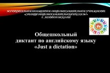 В рамках года родных языков и народного единства в Республике Татарстан в соответствии с приказом Министерства образования и науки Республики Татарстан от 22.07.2020 № под-780/20 «Об утверждении Календарного плана (Дорожной карты) модернизации содержания школьного образования из обязательной предметной области «Иностранные языки» по предметам «Иностранный язык», «Второй иностранный язык» и на основании приказа УО «ЛМР» РТ №179 от 11.02.2021с 15.02 по 19.02.2021 года в целях совершенствования навыков письменной коммуникативной компетенции обучающихся проведен общешкольный диктант на английском языке «Just a dictation» в 5-11 классах.