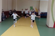 В первых классах прошла спортивная игра «Весёлые старты». Ребята соревновались в силе, смекалке, ловкости. Места распределились следующим образом: 1В-1 место, 1А- 2 место,1Г-3 место.