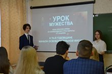 7 мая в рамках реализации Всероссийского проекта «Класс доброты. Герои нашего времени» Юнармейцы нашей школы Обидходжаев Азизходжа и Чатуров Богдан провели акцию с учащиеся 8 Б класса. Юнармейцы познакомили своих одноклассников с подвигом, совершенным героем – нашим современником и их ровесником - Иваном Ткаченко.