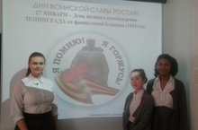 22 января в 8 А классе прошел классный час, посвященный памятной дате 1944 года – снятие блокады Ленинграда. Во время урока ребята просмотрели короткометражный документальный фильм «Блокада Ленинграда». После просмотра фильма, учащиеся делились впечатлениями и рассказывали об известных им фактах связанных с блокадой Ленинграда.