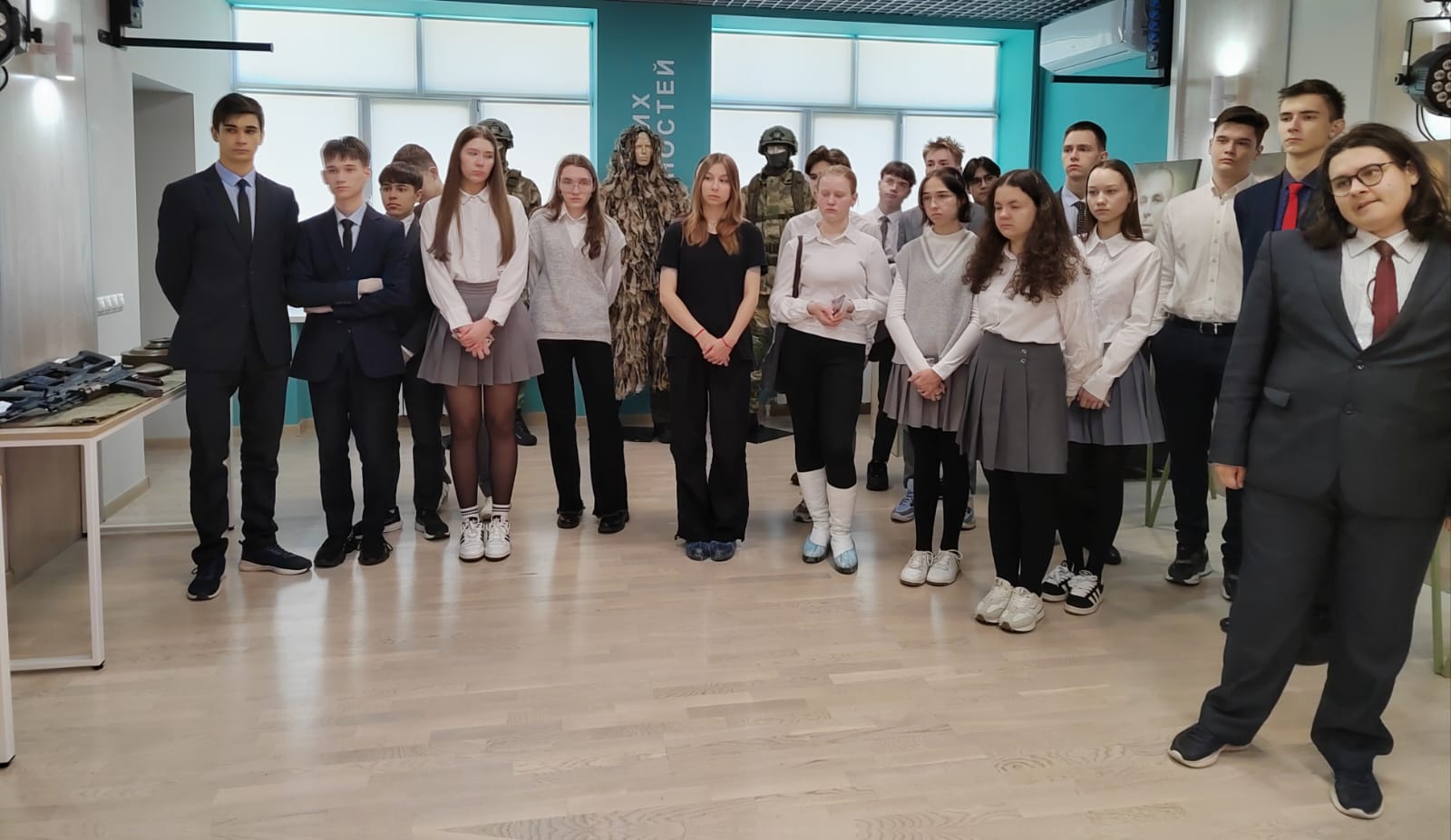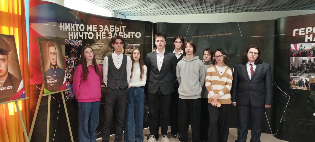Сегодня обучающиеся 10А и 10Б класса посетили молодежный центр «Высота», где ознакомились с экспонатами республиканской передвижной выставки «Герои среди нас», посвященной участникам специальной военной операции.