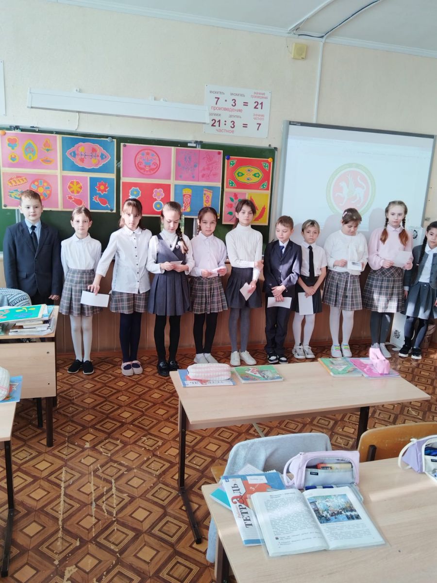 В 3Б классе прошел классный час "От южных морей до полярного края". Ребята узнали о народах, проживающих в России. Также познакомились с достопримечательностями нашей Республики. Третьеклассники в группах прочитали и рассказали одноклассникам о достижениях Татарстана.