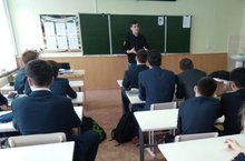 В рамках Единого классного часа, посвященного Конституции Республики Татарстан в 5-10 классах состоялась встреча с директором МБУ «Центр молодежных (студенческих) формирований по охране общественного порядка «Форпост» МО «ЛМР» Исхаковым Айратом Амировичем. Он рассказал учащимся о деятельности отряда «Форпост», целью которого является воспитание подрастающего поколения, формирование у подростков и молодежи уважения к правовым основам общества.