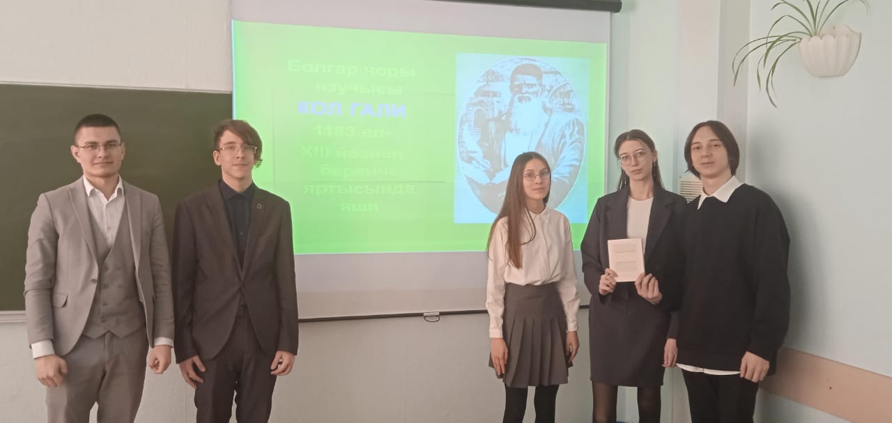 В 2033 году исполняется 850 лет со дня рождения Кул Гали. Его считают основоположником средневековой татарской литературы и признанным героем всего тюркского мира. Подготовка к юбилею уже началась, учащимися 10 А класса был проведён литературный час, где они познакомились с его биографией, поэмой и памятниками Кул Гали. Его имя стало знаменитым после того как он написал поэму "Кысса-и-Йосыф. Этому произведению исполняется 800 лет.