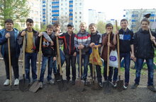 Учащиеся 9 «В» класса на субботнике, вносят свой вклад в экологию своего школьного двора. Органические отходы (траву, листья) перерабатывают с помощью естественного биоразложения – компостирования. В результате отходы превращаются в компост, который прекрасно удобряет почву и улучшает ее свойства.