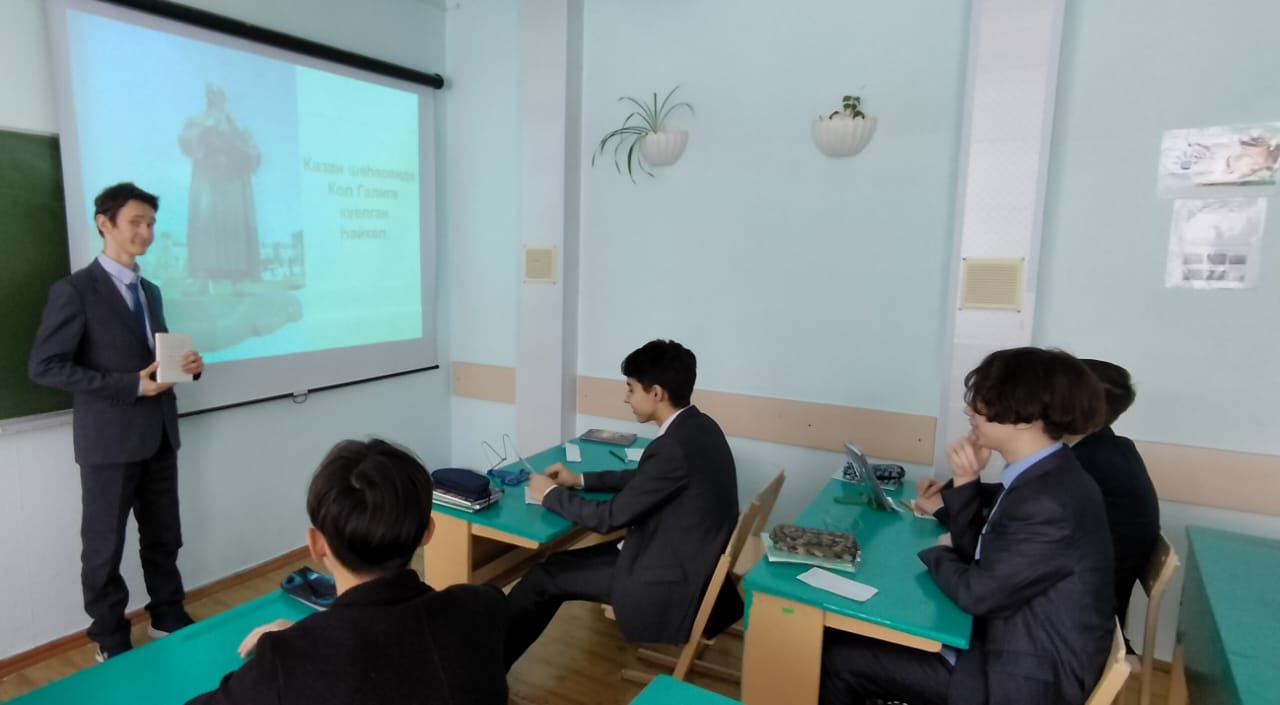 Бүген татар әдәбияты дәресендә 8 нче Б Г сыйныф укучылары Урта гасырларда яшәгән күренекле шагыйрь, мәгърифәтче һәм гуманист Кол Галинең иҗатын өйрәнделәр. Дәреснең максаты: укучыларга Болгар татар шагыйре Кол Галинең мәшһүр поэмасы, милли әдәбиятыбызның гүзәл ядкәре “Кыйссаи Йосыф” әсәренең тарихы, фәлсәфи, әхлакый, эстетик эчтәлеге турында мәгълүмат бирү; балаларның танып-белү офыкларын киңәйтү, әдәбият, халык тарихы буенча белемнәрен арттыру, иҗади фикерләү сәләтен үстерү; укучыларга әхлакый эстетик тәрбия бирү, милли мәдәниятебезгә карата мәхәббәт тәрбияләү иде.