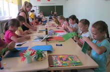 Сегодня наш день прошел под лозунгом: «День мастеров». С утра вожатые вместе с детьми оформили отрядные уголки со стенгазетами, где были указаны название и девиз, речёвка и песня отряда, план работы на смену. Проведена минутка здоровья «Закаливание». После зарядки все пошли подкрепиться в столовую, где их ждали заботливые повара и вкусная здоровая еда. Ну а дальше ребята под руководством воспитателя Галиевой Е. К. научились изготавливать из цветной бумаги цветы. Работы получились красивыми, оригинальными. Наилучшие работы были отмечены призами. Молодцы, ребята!