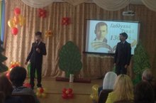 Закирова Л.Ш җитәкчелегендә 3 Г һәм 4 Б сыйныф укучылары Г.Тукайның "Кызыклы шәкерт" һәм "Бала белән күбәләк" әсәрләрен сәхнәләштерделәр. Бу шигырь геройларының образларына кереп уйнау укучыларга бик ошады, тамашачылар да бик кызыксынып карадылар.