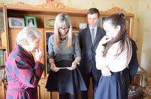 8-го апреля ученики 7Б класса вместе с классным руководителем Миляушой Загитовной посетили ветерана войны и труда Семёнову Марию Ларионовну. Целью визита было вручение ветерану памятной медали в честь 70-летия со дня Победы. Учащиеся подготовили торжественное поздравление и преподнесли пакет с подарками. Мария Ларионовна была очень тронута поздравлением и просила поблагодарить всех, кто организовал награждение, кто помнит о ветеранах.