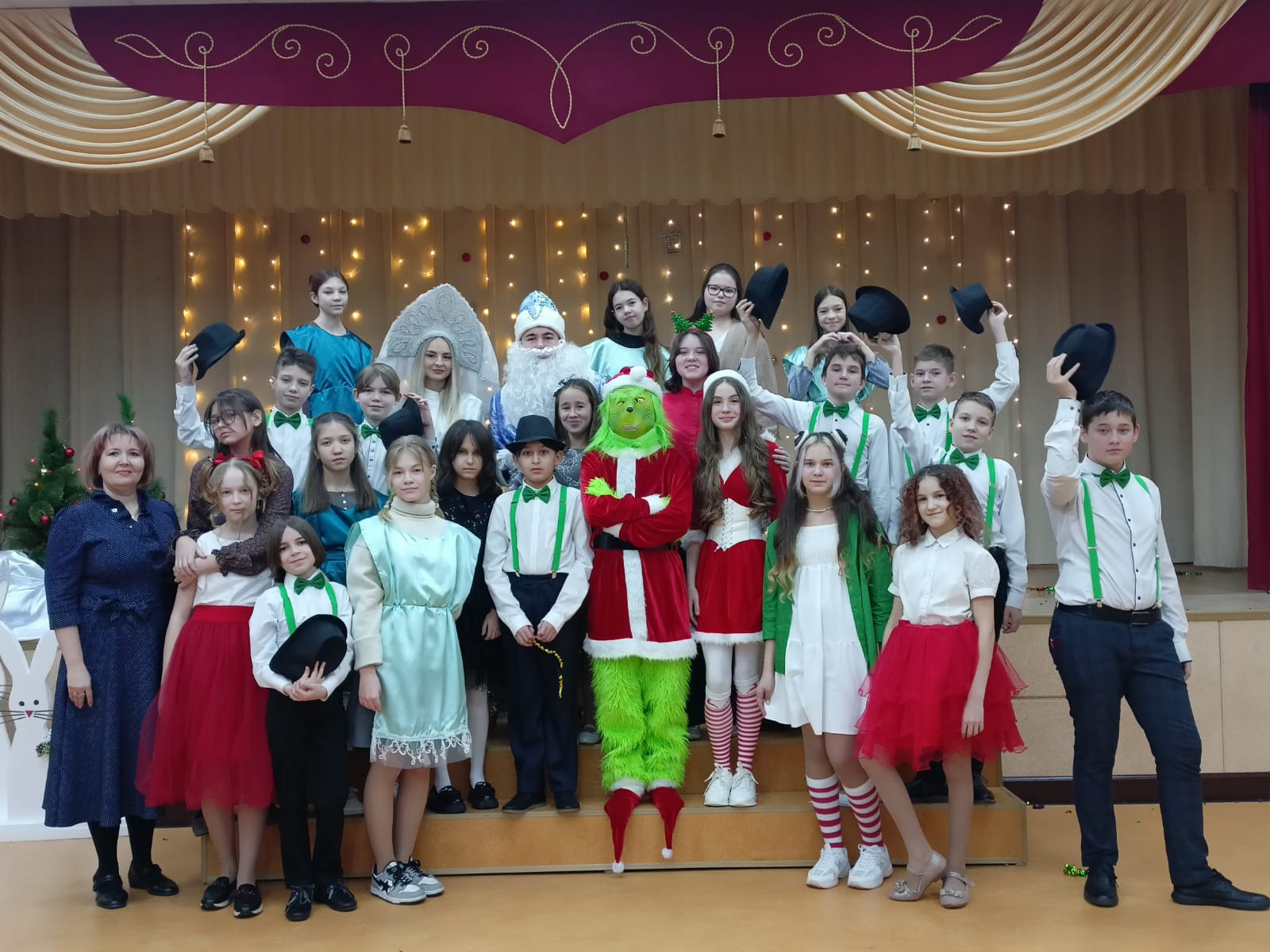 27 декабря 2023 года на новогоднем утреннике состоялся торжественный дебют театрального кружка на английском языке "Bright Stars" с мюзиклом "The Grinch Stole Christmas", где учащиеся 6 "Б" класса постарались передать атмосферу праздника Рождества, которую так не любил злобный житель горы Гринч, и несчастную жизнь сироток в приюте в мюзикле «Little Orphan Annie», основанном на комиксе Харольда Грея.