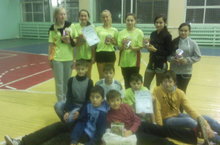 Команда девушек, занявшая I место и команда юношей, занявшая II место в спартакиаде учащихся г. Лениногорска по мини-футболу: