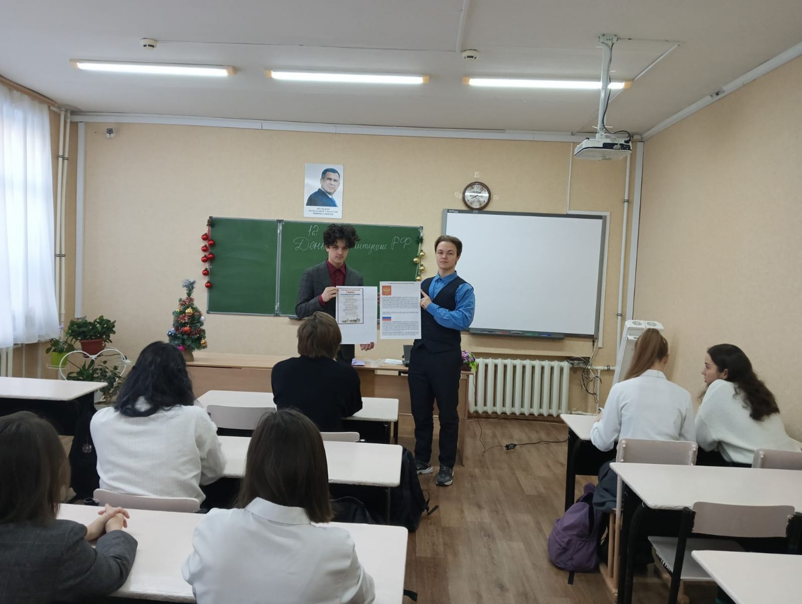 В 9 В классе прошло внеурочное занятие "Разговоры о важном" на тему "Главные законы страны". На занятии формировались представления о важности Конституции в жизни гражданина, воспитание чувства гражданского долга и ответственности.