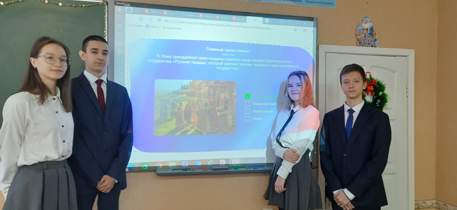 С помощью интерактивного задания "Главные законы страны" ребята вспомнили, какие основные положения, регулирующие жизнь людей и общества, в ней закреплены.