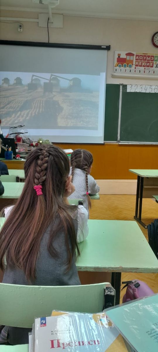 С целью расширить знания о пользе хлеба, о его ценности, о тяжелом труде хлебороба , а также воспитания бережливого отношения к хлебу, уважительного отношения к труду механизатора, пекаря в 1Г классе прошёл классный час "Как хлеб на стол пришел" Дети узнали о том, сколько людей трудились до того, как хлеб появился на столе, о пользе и ценности хлебобулочных изделий и их многообразии, рассмотрели колоски, собрали пословицы о хлебе, ответили на вопросы викторины и посмотрели фильм о Тане Савичевой.