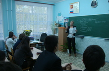Мастер-класс для старшеклассников социально-экономического профиля провела старший специалист группы развития розничного бизнеса Лениногорского филиала ОАО «АК БАРС» банк Галеева Ю.И., которая представила презентацию банка, рассказала о видах услуг и ответила на интересующие вопросы обучающихся.