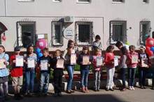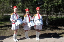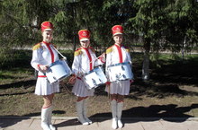 Расклеивание листовок на подъездах микрорайона «С ДНЕМ ПОБЕДЫ!Участие барабанщиц в параде Победы