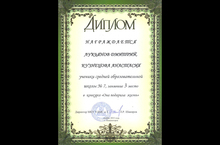 Лукьянова Дмитрия и Кузнецову Анастасию учащихся 7 В класса - занявших 3 место, руководитель: Осипова О.В.