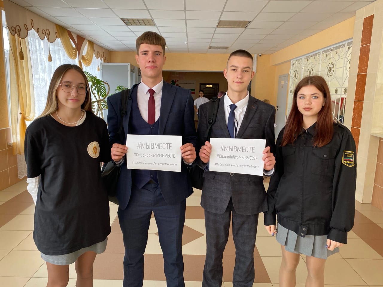 28.09.2023 школьным отрядом «Форпост», была проведена акция «Спасибо, что МЫ ВМЕСТЕ», посвященная 30 сентября – День воссоединения Донецкой Народной Республики, Луганской Народной Республики, Запорожской области и Херсонской области с Россией.