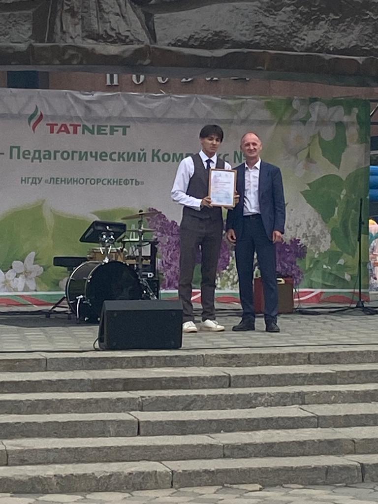 На празднике в рамках церемонии награждения «Вперёд за знаниями» были награждены ученики и педагоги школы: в номинации «Интеллектуал года» - Афанасьева Юлия, ученица 8В класса, в номинации «Спортсмен года» - Давлетшин Султан, ученик 10 класса, за результативную подготовку учащихся к конкурсам и олимпиадам - учитель истории и обществознания Горшенина Надежда Михайловна и ветеран педагогического труда, учитель химии Бурганова Сания Саубановна.