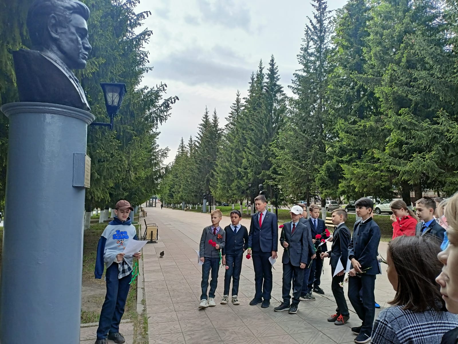 Великая Отечественная Война оставила трагический след в каждой семье. Семья Сергеева Данила не стала исключением. Его прадед Мурзин Ибрагим Хусаинович защищал нашу Родину от фашистских захватчиков. В канун Великой даты 9 Мая ученики 7В класса с классным руководителем Шандиновым О. С. собрались на Аллее Героев. Данил рассказал о великом подвиге своего прадедушки. Ребята минутой молчания почтили память тех, кто не жалел сил и здоровья, отдал свою жизнь за победу и возложили цветы к бюсту Героя Советского Союза Мурзина Ибрагима Хусаиновича.