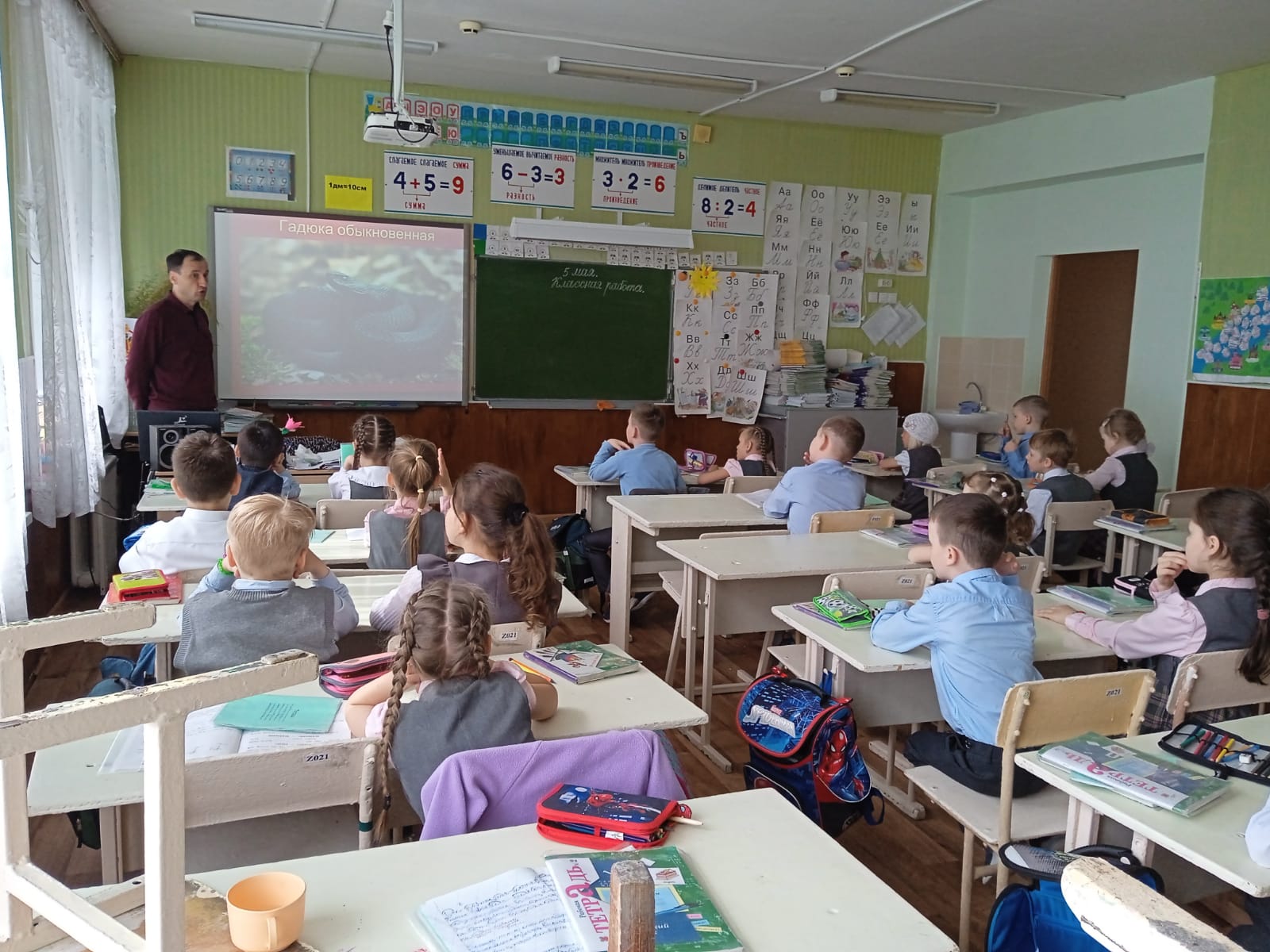 Ученики 1а,1в,2в классов участвовали на встрече с государственным инспектором по охране природы, специалистом государственного природного заказника "Степной" им. А. И. Щеповских Галямутдиновым Х. Х.. Встреча была посвящена вопросам охраны растений и животных, Красной книге. Дети ответили на вопросы викторины по охране растений , а также сами активно задавали вопросы касающиеся природы Лениногорского района.