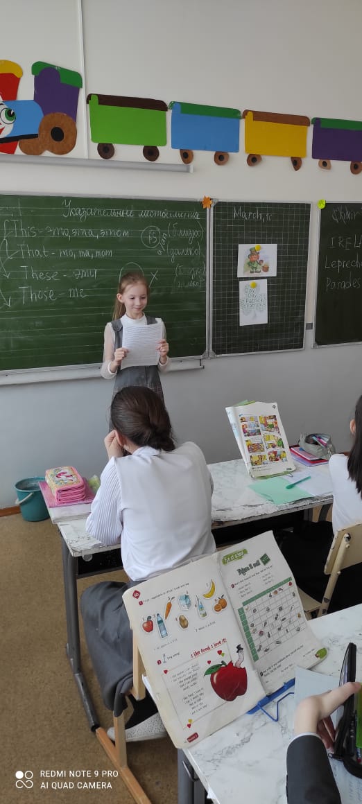 Четверг 16 марта прошел под лозунгом дня «Ты всё делаешь правильно». Учитель Заплетаева И.Н. провела в 4А и 4В классах интерактивную познавательно-развлекательную игру «Do You Know English Grammar?», цель которой познакомить учащихся с праздником «День святого Патрика» и повторение грамматического материала по теме прошедшего времени Past Simple.