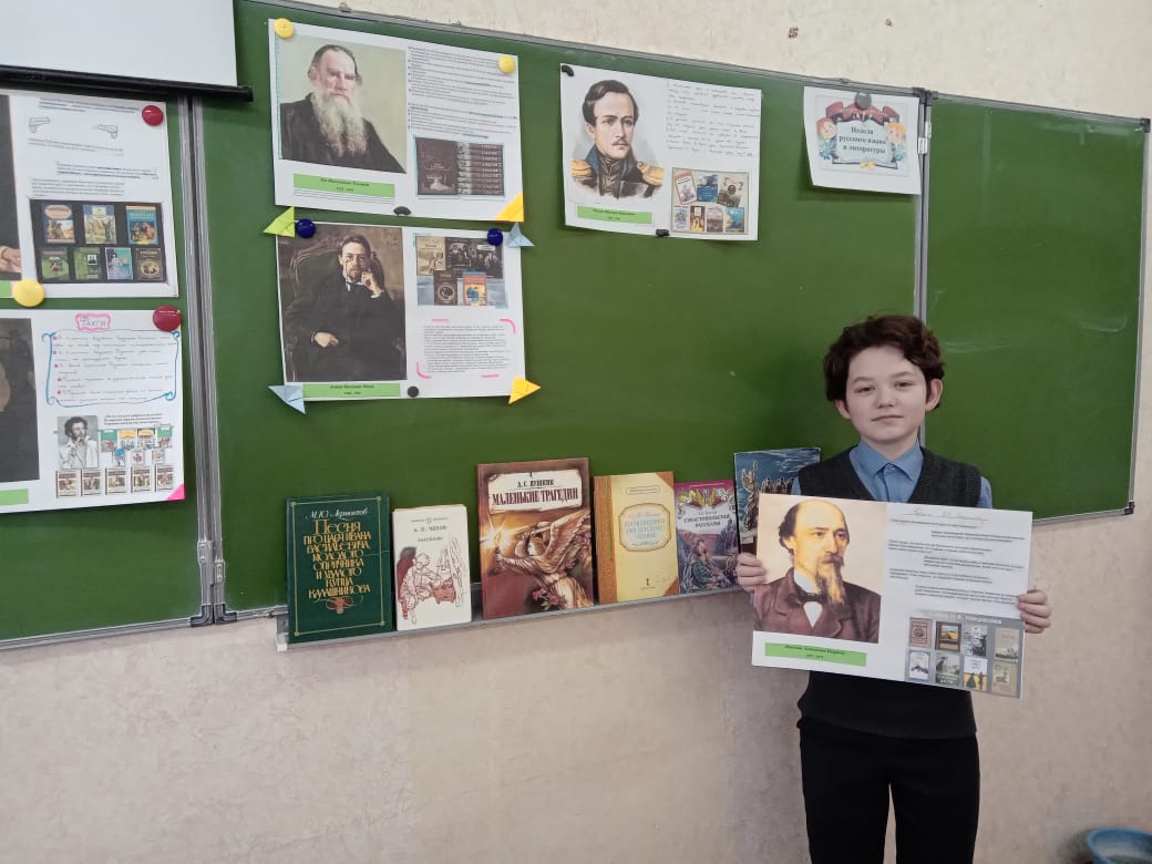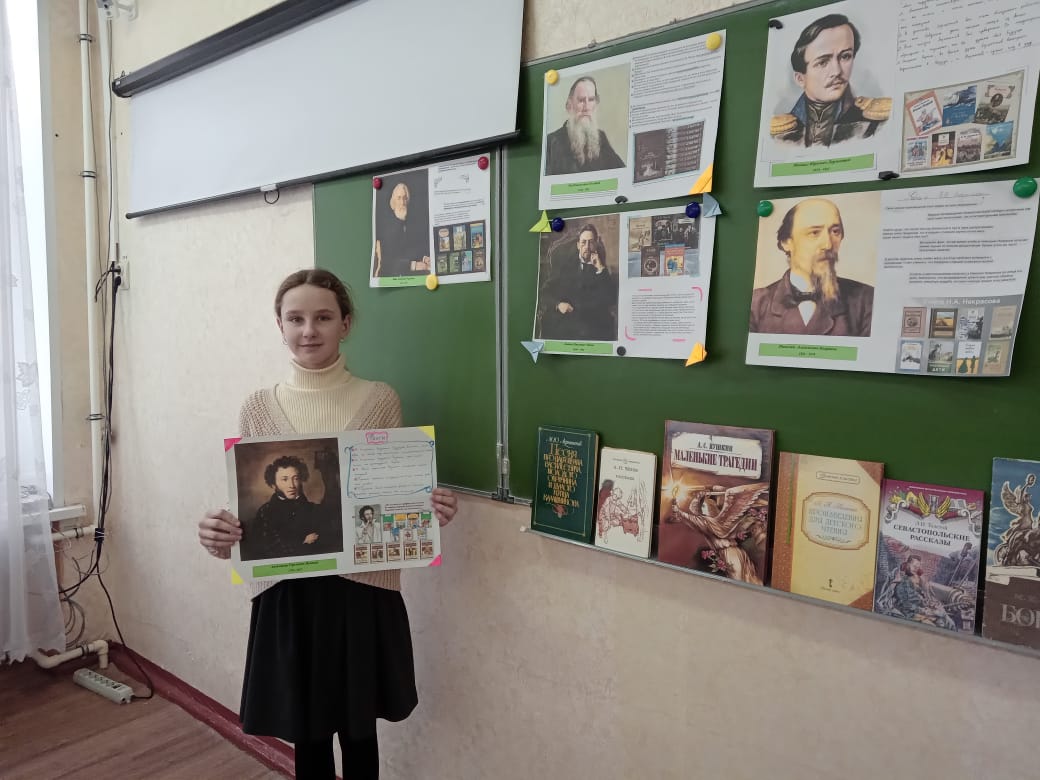 31 января в рамках Недели русского языка и литературы в 7в классе была проведена литературная викторина, посвящённая творчеству великих русских классиков: А.С.Пушкина, М.Ю.Лермонтова, Н.А.Некрасова, И.С.Тургенева, А.П.Чехова и Л.Н.Толстого. Учащиеся подготовили сообщения о малоизвестных фактах из жизни писателей. Разделившись на команды, отвечали на вопросы викторины "Угадай героя ". Подведя итоги, ребята выполнили небольшую проектную работу по созданию альбома.