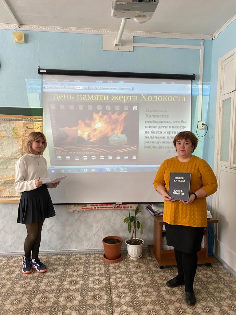 21 января в 11-х классах СОШ 7 прошел урок памяти, посвященный жертвам холокоста. Ребята обсудили просмотренные видео фрагменты о преследовании и массовом уничтожении нацистами представителей различных этнических и социальных групп (советских военнопленных, поляков, евреев, цыган, масонов, безнадёжно больных и инвалидов и др.) в период существования нацистской Германии.