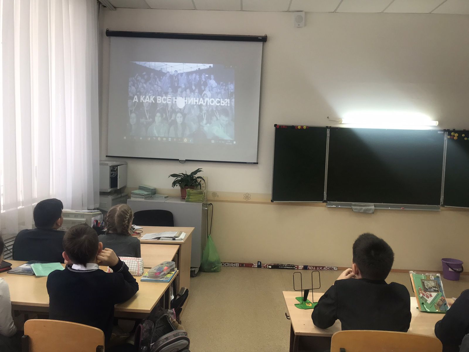 30 января в 4 В классе прошел очередной классный час в рамках общероссийского классного часа «Разговоры о важном» на тему «Движение первых». В ходе разговора ребята вспомнили что такое общественные организации. Участники, просматривая видеоролики и презентации познакомились с хронологией создания «Движения первых», с их местом рождения, посмотрели видеообращение основателя движения Григория Гурова, познакомились с направлениями движения «Орлята».