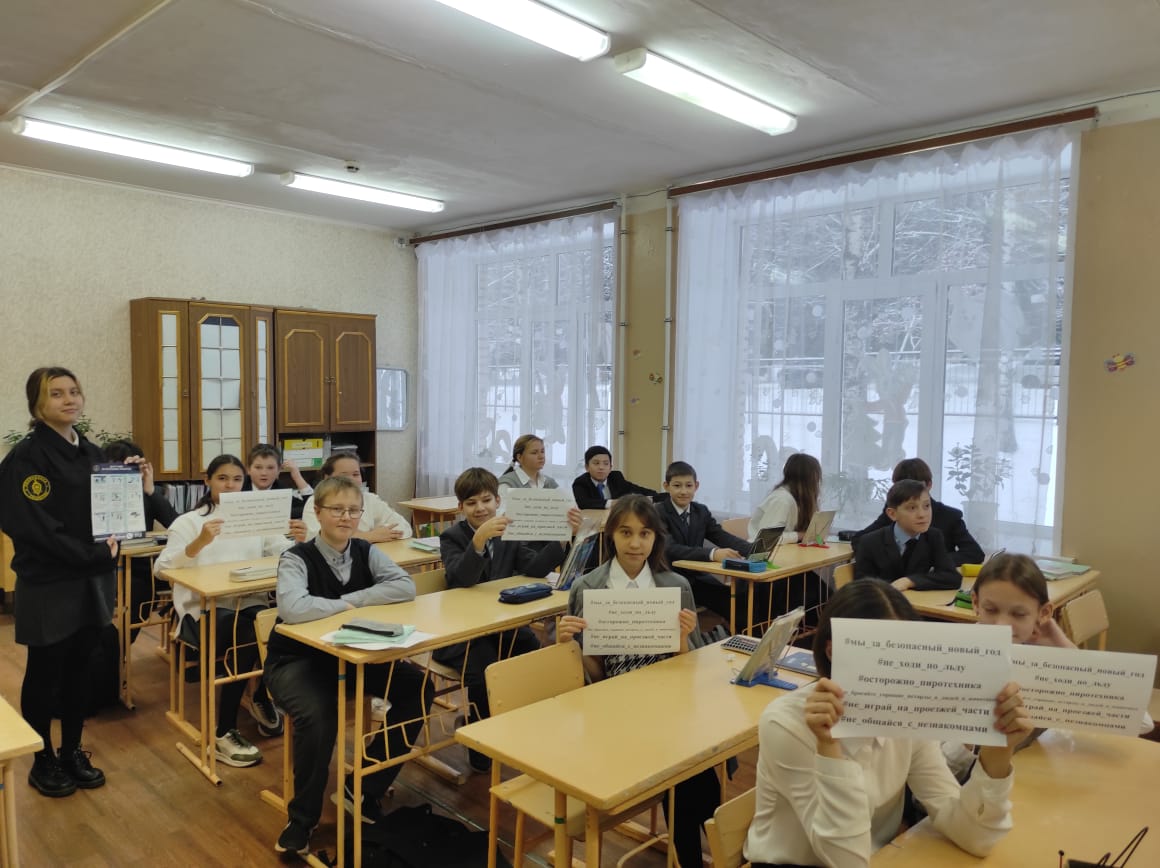 ✅ Во время мероприятия активистами были зачитаны правила поведения на зимнее время, просмотр поучающего мультфильма и фотографирование с хештегами.