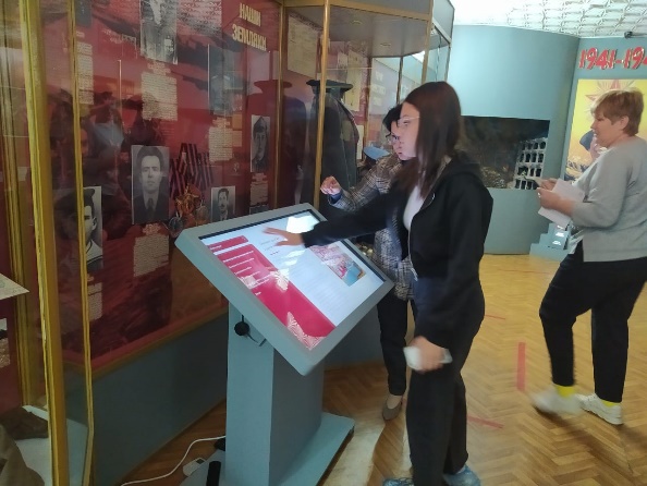Работники музея рассказали, как бережно и кропотливо собираются материалы об участниках всех войн двадцатого и двадцать первого века, тружениках тыла из нашего города и района. На сегодняшний день энциклопедия уже содержит около четырёх тысяч документов и фотографий. Благодаря их труду и труду волонтеров у ребят появилась возможность в электронной энциклопедии поискать имена своих родственников.