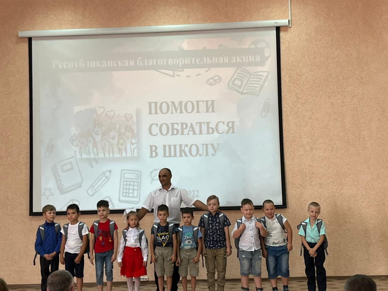 22.08.2022 прошла ежегодная Республиканская благотворительная акция «Помоги собраться в школу». Для первоклассников была организована развлекательная программа, в конце которой они получили в подарок портфели и школьные принадлежности.