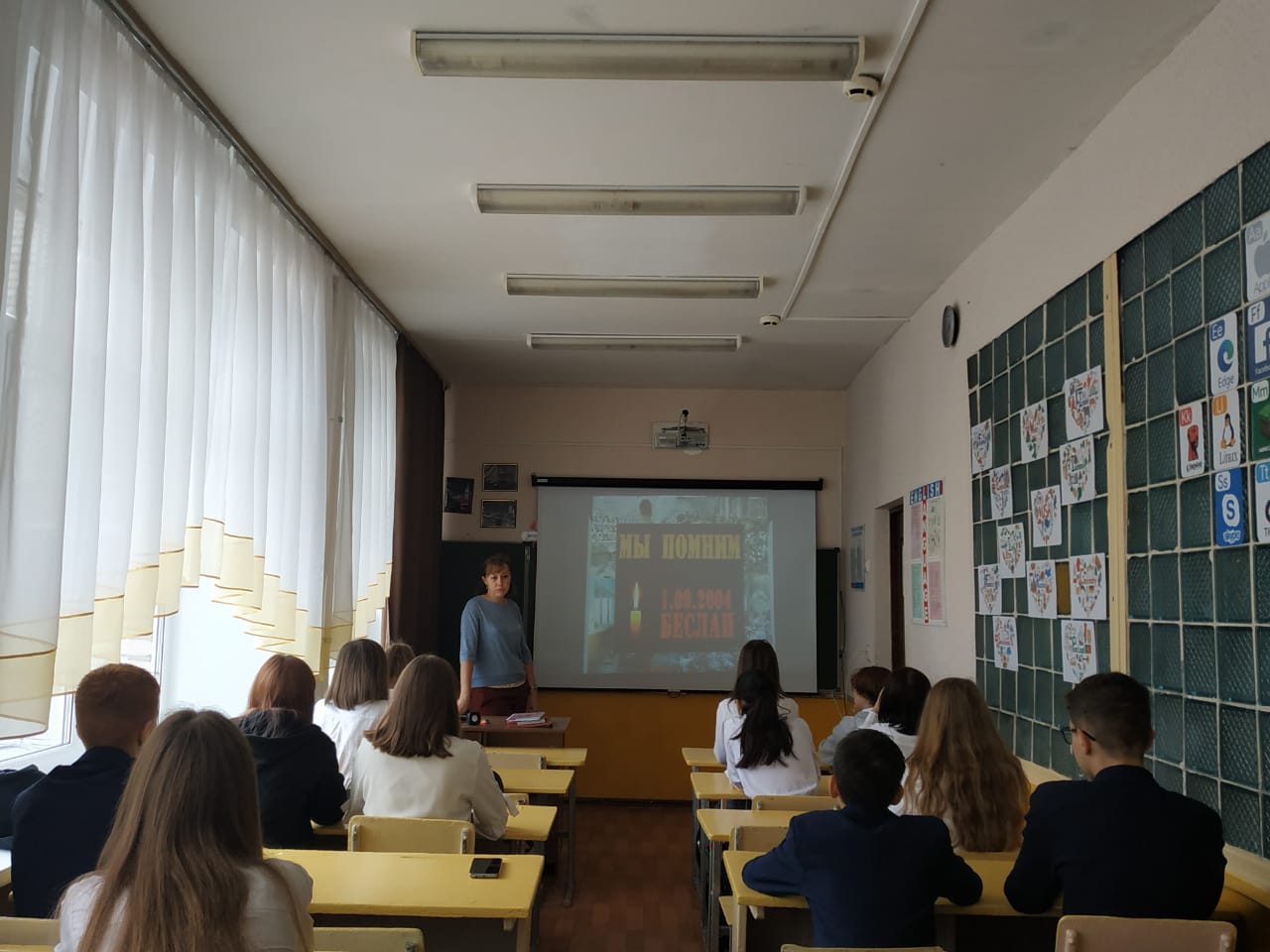 Ежегодно 3 сентября отмечается День солидарности в борьбе с терроризмом. Этот день приурочен к трагическим событиям, произошедшим 1 сентября 2004 года в школе Беслана. Учащиеся 8б класса почтили память погибших минутой молчания.