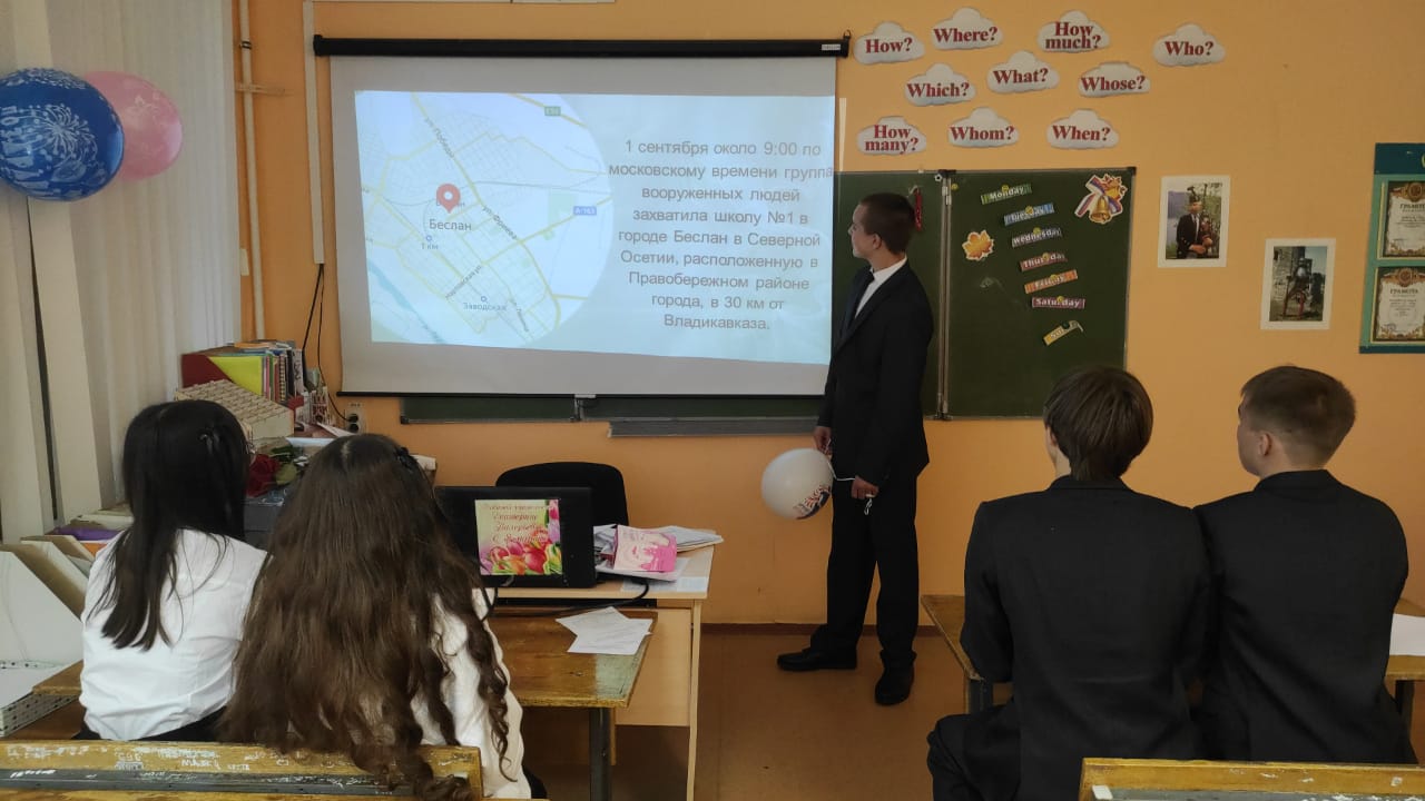 3 сентября в 9 "А" классе прошёл классный час "Беслан-город ангелов". Ровно 20 лет назад, 1 сентября 2004 года около 9.00 в Северной Осетии, в городе Беслан, что в 30 км от Владикавказа, вооружённые люди захватили школу √1.В результате террористического акта 1-3 сентября погибли 334 человека, из них 186 детей, 15 учителей, более 900 человек получили ранения.