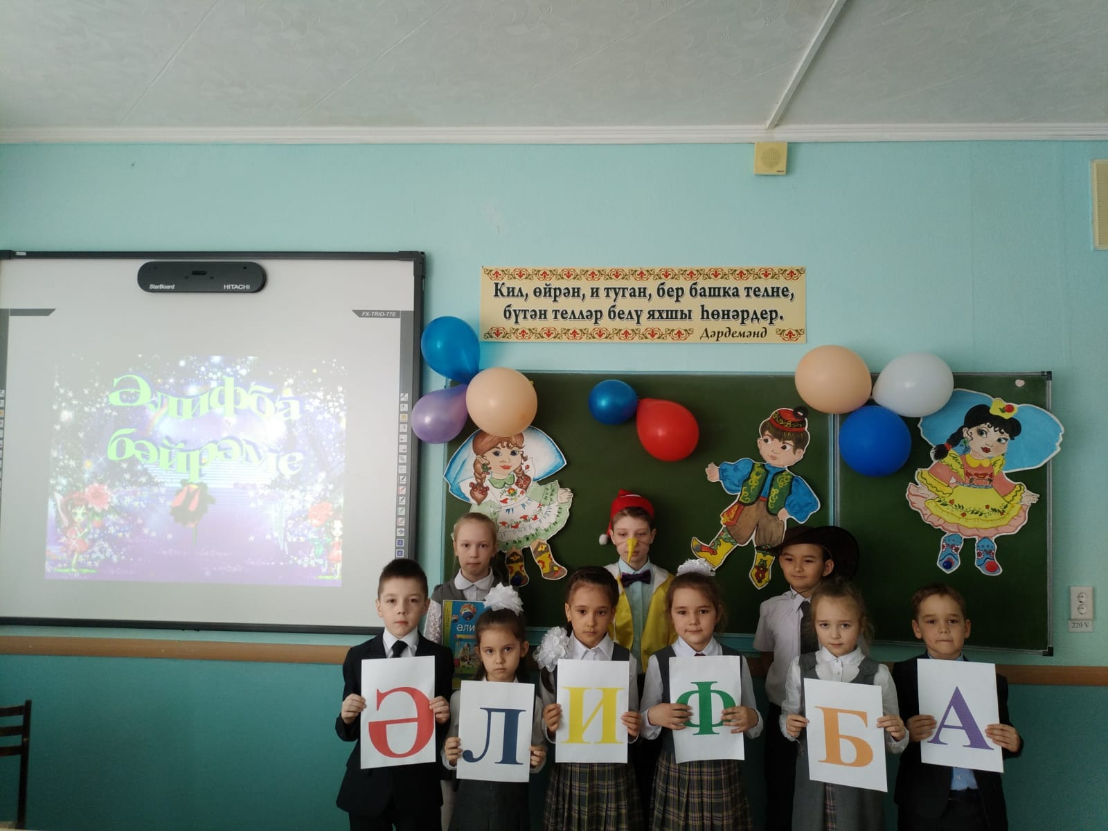 25 нче март көнне мәктәбебездә 1нче сыйныф укучыларының татар төркемендә “Сау бул, Әлифба!” дип исемләнгән музыкаль кичә үткәрелде. Кичә барышында белем дөньясында иң беренче китап булган Әлифбага, аны өйрәнүдә ярдәм иткән укытучыга һәм әти-әниләргә рәхмәт сүзләре яңгырады. Укучылар татар халкының гаять бай Әлифба фонды, Әлифба китабының тарихы турында күп мәгълумат алдылар. Көтмәгәндә “Буратино” һәм “Белмәмеш” килүе бәйрәмгә ямь өстәде. Укучыларга аларның биремнәрен үтәүдә осталыкларын күрсәтергә туры килде. 1 сыйныф укучылары үзләренең беренче китаплары белән хушлаштылар. Аларга алдагы укуларында зурдан зур уңышлар телибез!