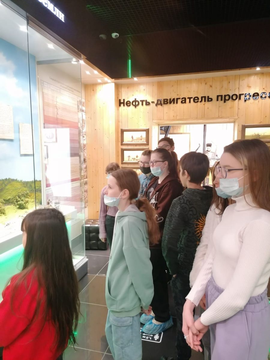 Согласно плану работы на весенние каникулы обучающиеся 6в класса с кл. руководителем Шандиновым О. С. посетили Музей нефти г. Лениногорска. Экскурсовод увлечённо рассказал об открытии нефтяного месторождения и зарождении нашего города. Ребятам было интересно узнать о поэтапном развитии нефтяной промышленности РТ.