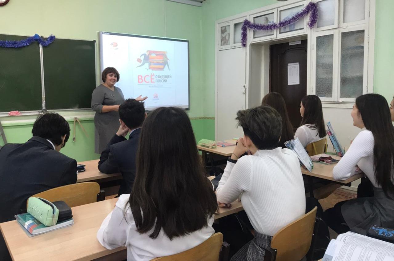 Обучающиеся познакомились с основными направлениями работы Пенсионного фонда, изучили пенсионную формулу, узнали, что и когда надо делать для обеспечения себе достойного размера будущей пенсии, как подготовиться к первым взрослым шагам трудовой жизни. Выпускники получили экземпляр учебного пособия «Все о будущей пенсии: для учебы и жизни». На страницах этого красочного пособия рассказано: что такое СНИЛС, почему важно получать «белую» зарплату, а не зарплату «в конверте». Урок проводился с целью формирования понимания современной пенсионной системы и личной ответственности каждого за свое будущее пенсионное обеспечение.