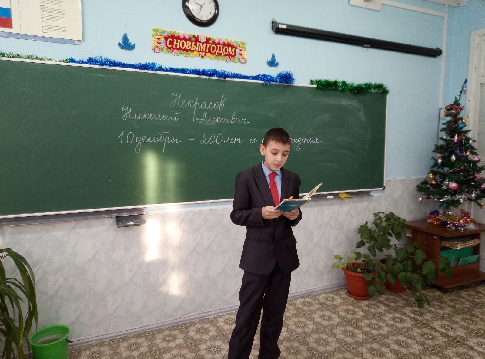 10 декабря исполнилось 200 лет со дня рождения Николая Алексеевича Некрасова. В 5-ых классах прошел урок литературы (учитель Маслакова Г.Я.), посвященный жизни и творчеству великого русского поэта. Учащиеся подготовили сообщения об основных фактах биографии Николая Алексеевича; читали его стихи, в которых любовь к русскому народу, к родной земле и природе тесно переплелись в единое глубокое чувство.